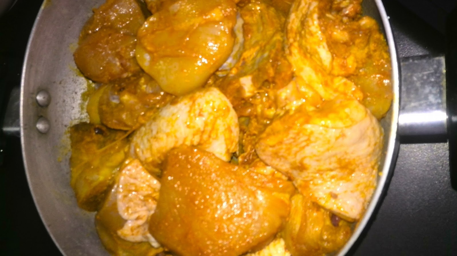 1. Gaul ayam,garam,serbuk kari dan serbuk kunyit dan goreng hingga masak